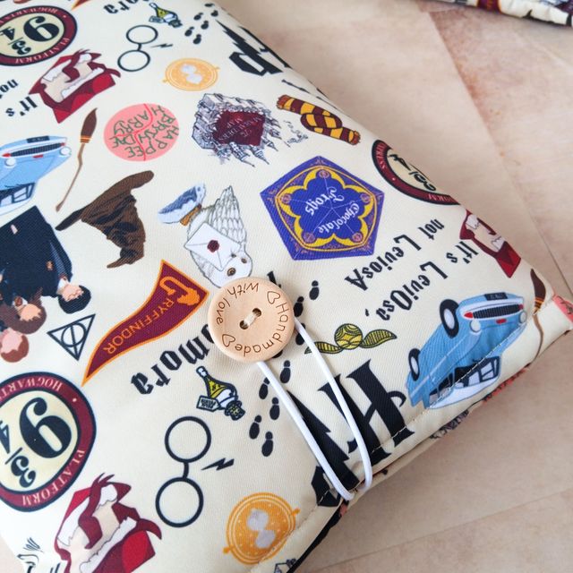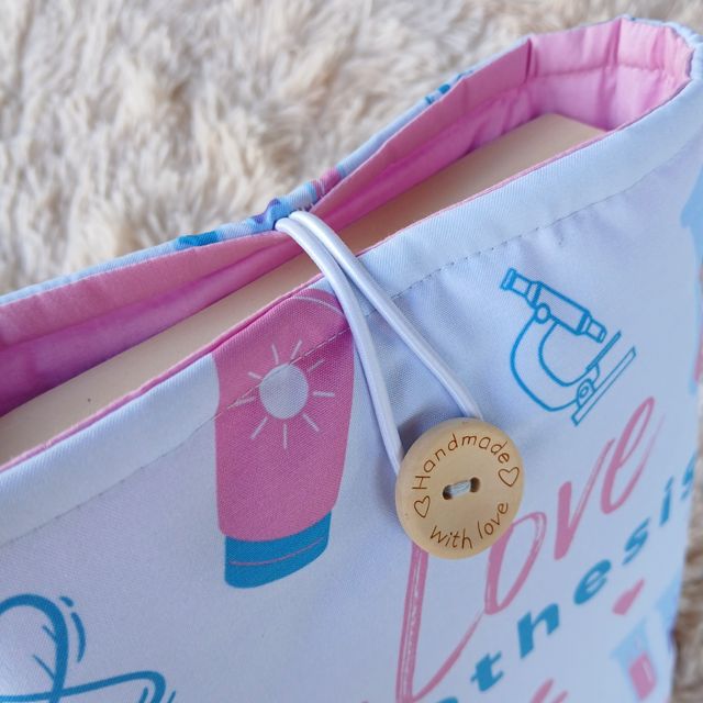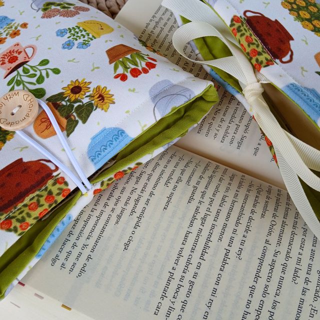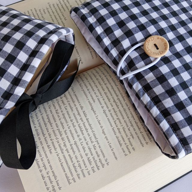 Nuestras fundas son de tamaño libro (22x28), incluyen un bolsillo interno y puedes elegir entre dos modos de cierre: botón o lazo.